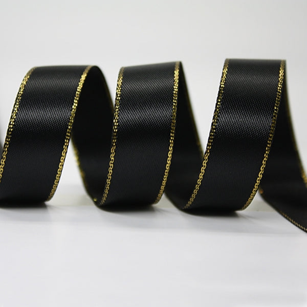 Metallic Edge Satin Ribbon 030 Black with Gold
