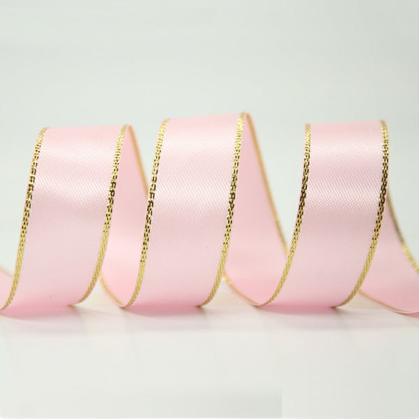 Metallic Edge Satin Ribbon 123 Pearl Pink with Gold