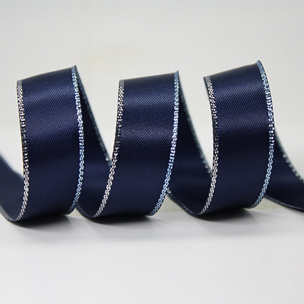 Metallic Edge Satin Ribbon 370 Navy with Silver