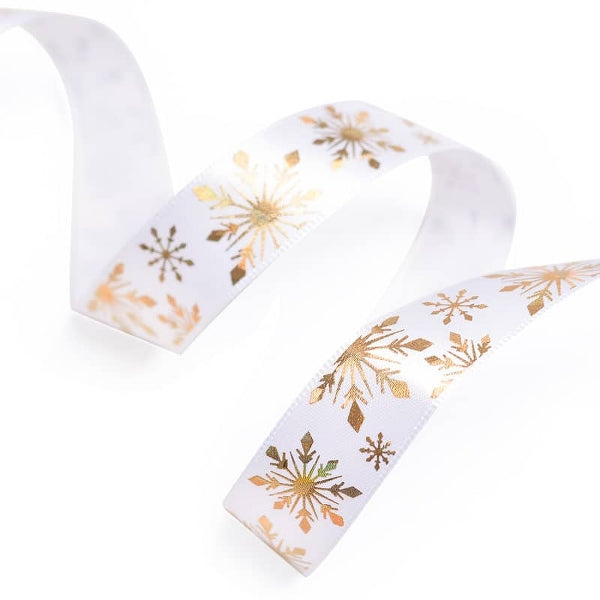 Snowflake Printed Satin Ribbon Gold or Silver