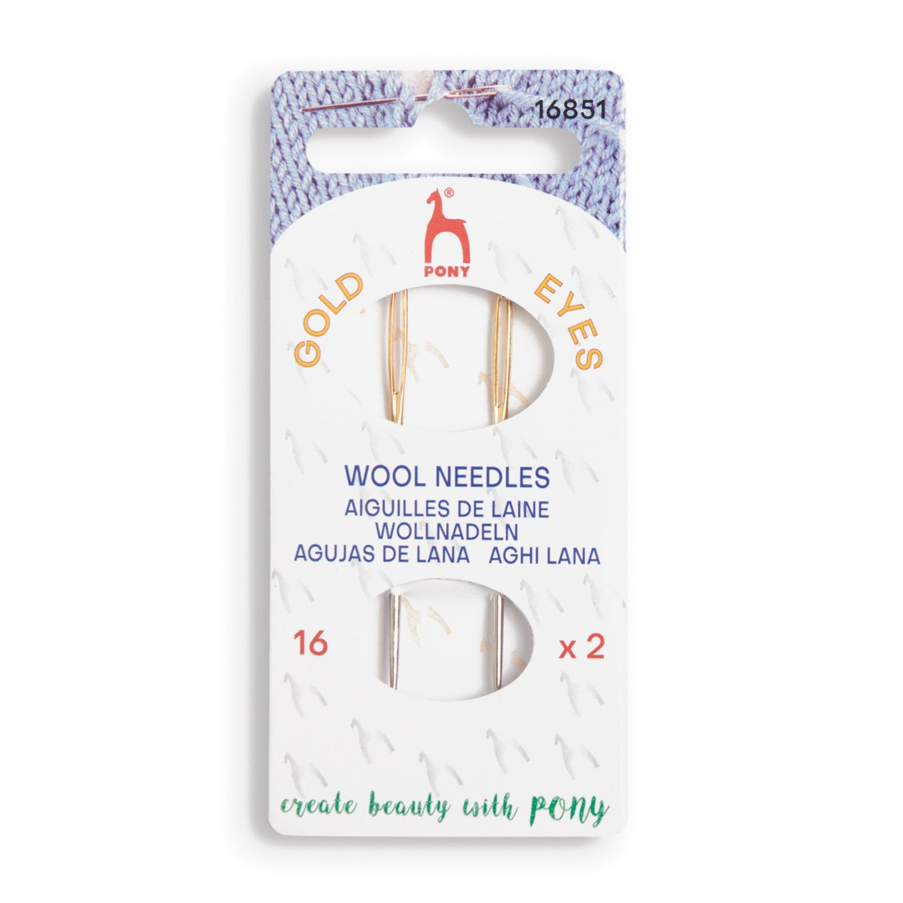 All Pony sewing needles have an anti-tarnish 'Gold Eye' which are exceptionally smooth and easy to thread. This set of two needles have one blunt and one sharp point for sewing up knitted pieces of work.