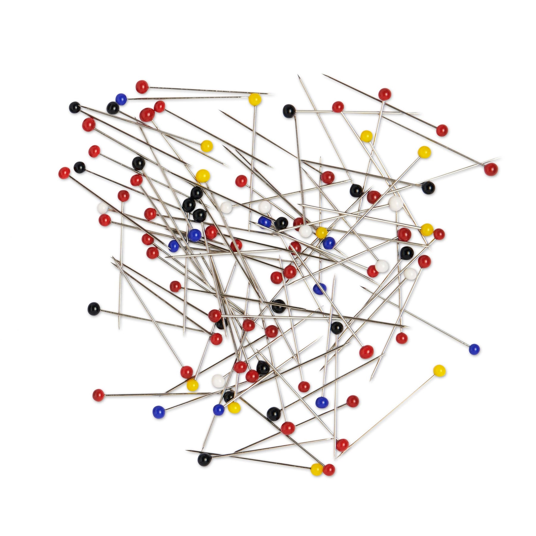 Coloured glass headed pins made from hardened, tempered, high carbon steel wire.