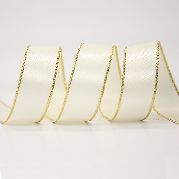 Metallic Edge Satin Ribbon 028 Antique White with Gold