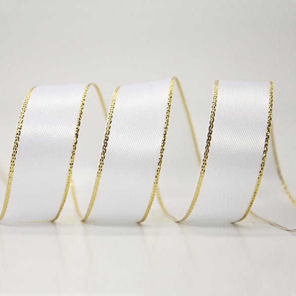 Metallic Edge Satin Ribbon 029 White with Gold